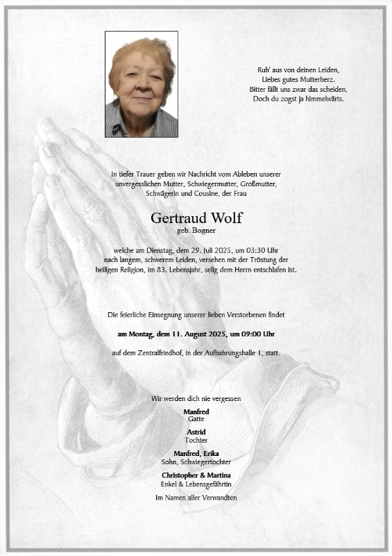 geboren am 9. Juni 1943 gestorben am 29. Juli 2025 in Wien