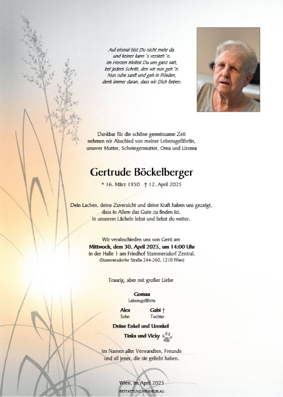 Wie ein schützender Engel hast du, liebe Oma, immer über uns alle gewacht. Wenn ich mein Blick in Richtung Himmel wende, werde ich wissen, dass du da bist und es immer noch machst.