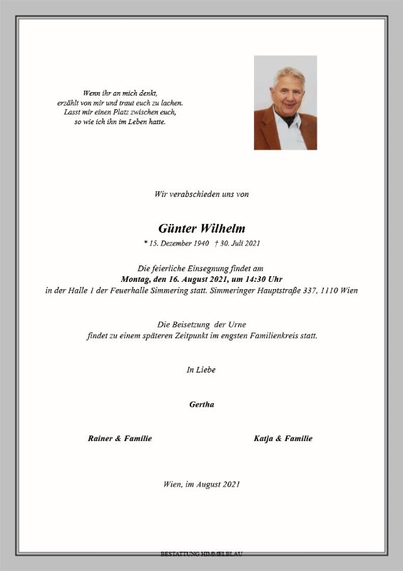 geboren am 15. Dezember 1940 in Wien gestorben am 30. Juli 2021 in Wien
