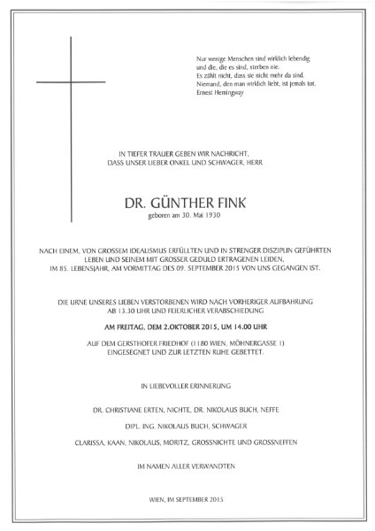 geboren am 30. Mai 1930 gestorben am 9. September 2015