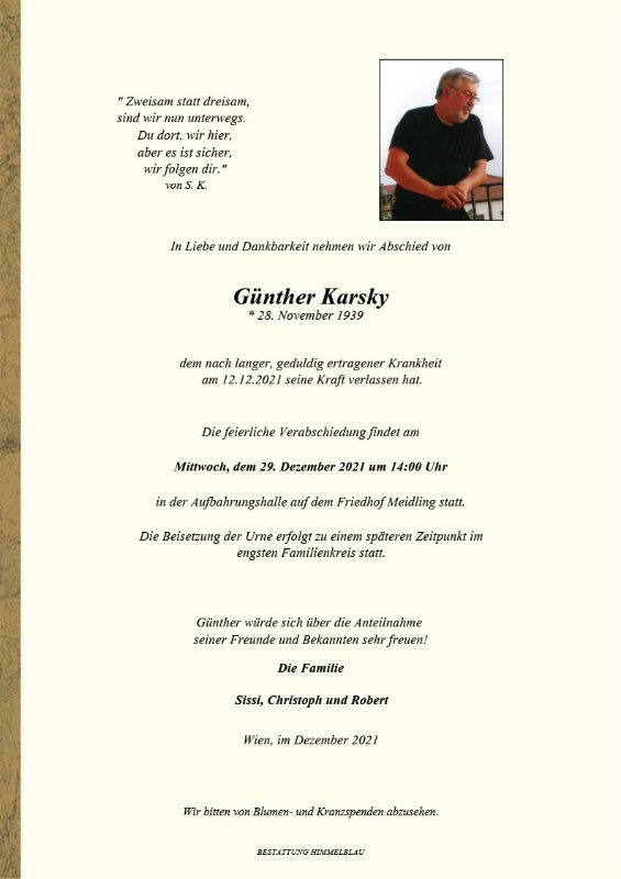 geboren am 28. November 1939 in Wien gestorben am 12. Dezember 2021 in Wien