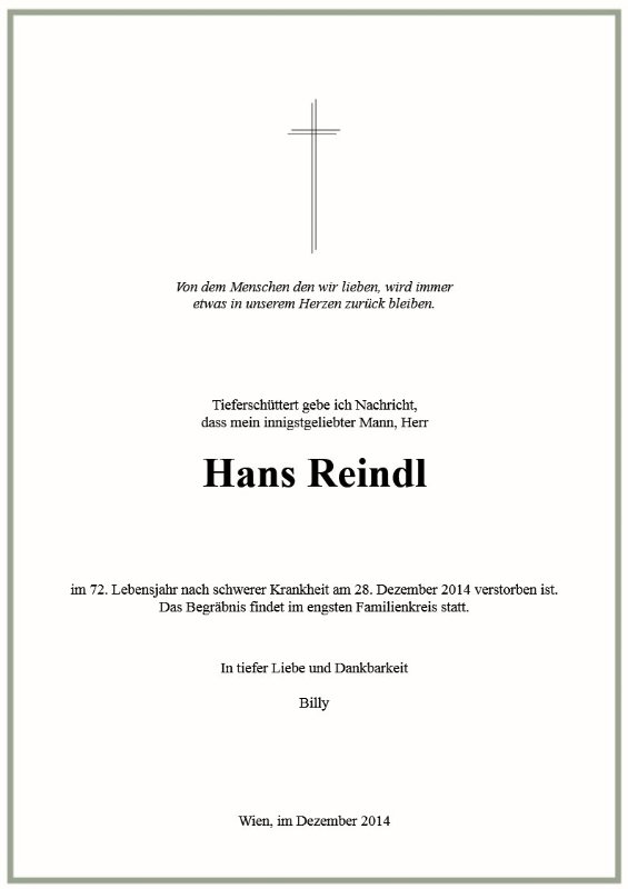 geboren am 22. Februar 1943 in Wien gestorben am 28. Dezember 2014