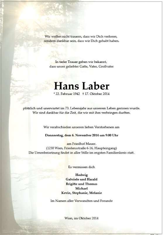 geboren am 22. Februar 1942 in Wien gestorben am 17. Oktober 2014 in Wien