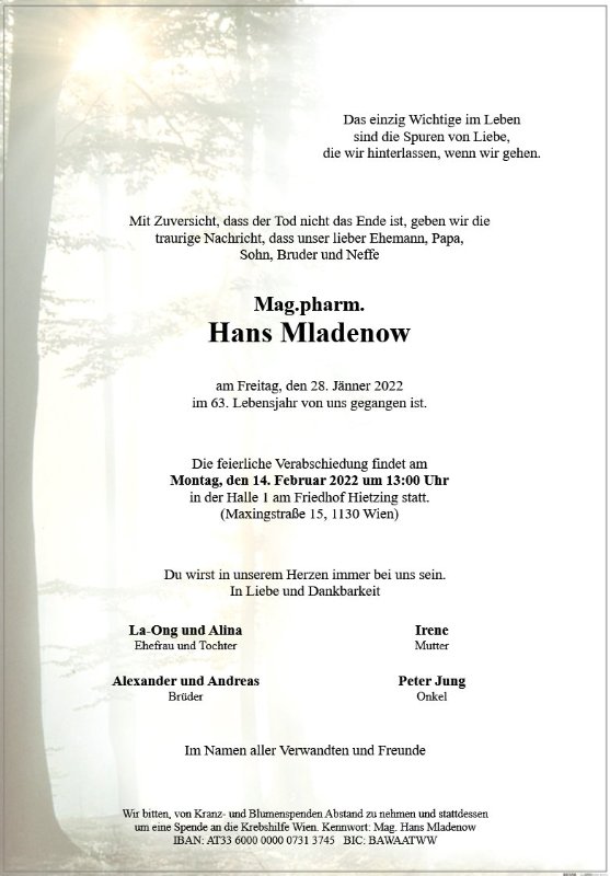 geboren am 6. Januar 1960 in Wien gestorben am 28. Januar 2022 in Wien