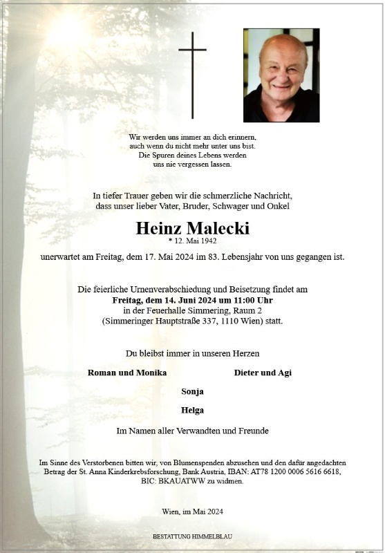 geboren am 12. Mai 1942 gestorben am 17. Mai 2024 in St. Pölten