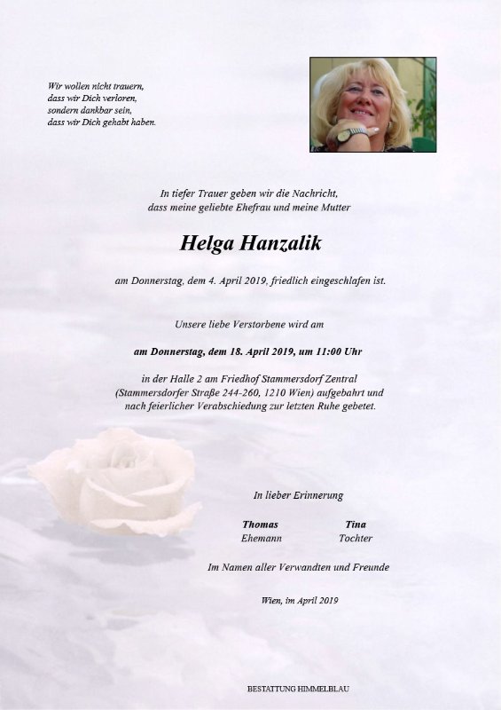 Wenn man einen geliebten Menschen verliert, gewinnt man einen Schutzengel dazu. In diesem Sinne, bitten beschützen Sie Tina!! Es ist zwar lange her, seit wir uns das letzte Mal sahen, aber es wird mir unsere Zusammentreffen immer in lieblicher Erinnerung sein!! Ich hoffe, dass es Ihnen jetzt wo Sie sind, besser geht. Ruhen Sie in Frieden, letzte Grüsse von Tinas Freundin Christine