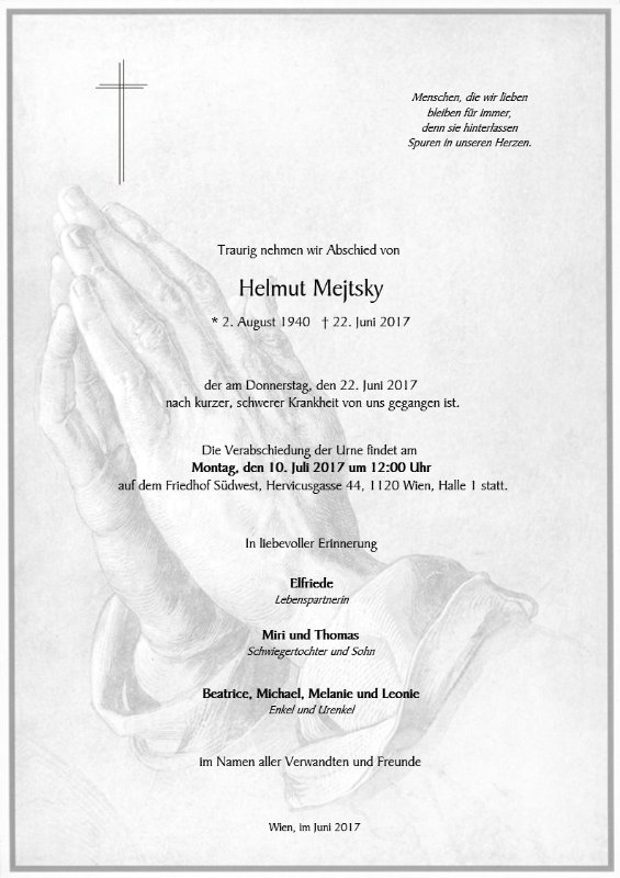 geboren am 2. August 1940 in Wien gestorben am 22. Juni 2017 in Wien