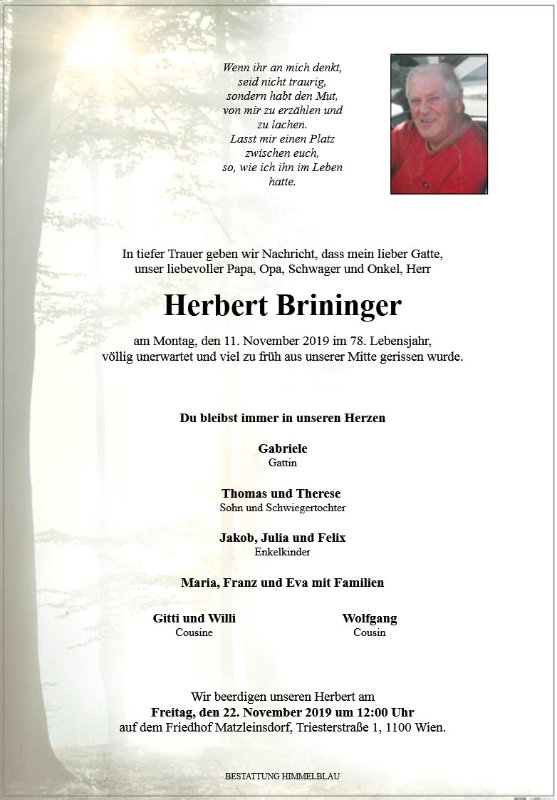geboren am 7. Mai 1942 gestorben am 11. November 2019 in Wien