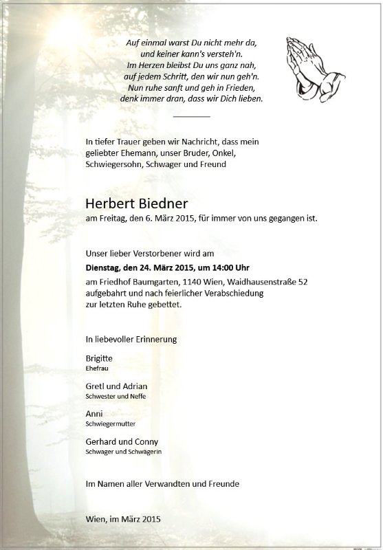 In unserem Herzen werden wir dich immer in Liebe wiegen.