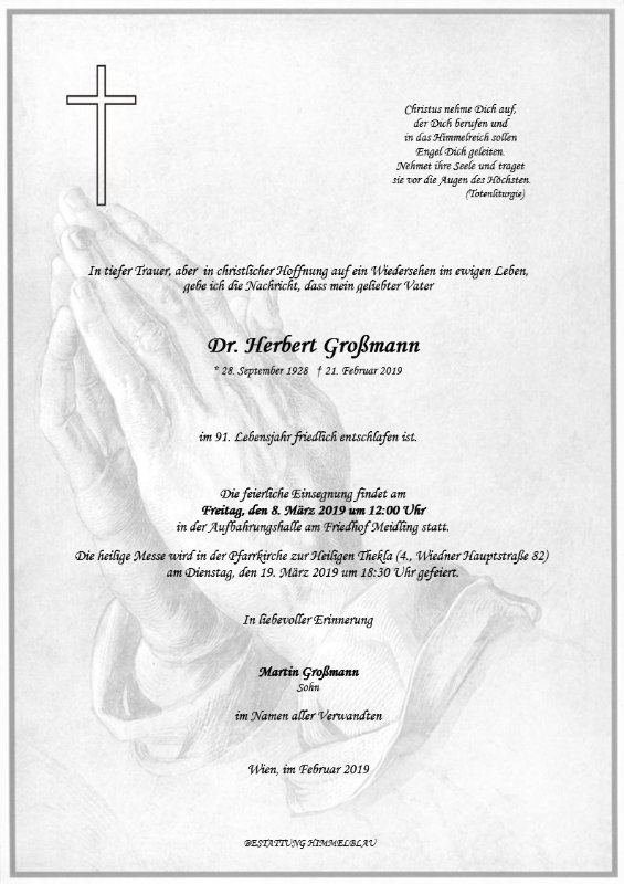 geboren am 28. September 1928 in Heidenreichstein gestorben am 21. Februar 2019 in Wien