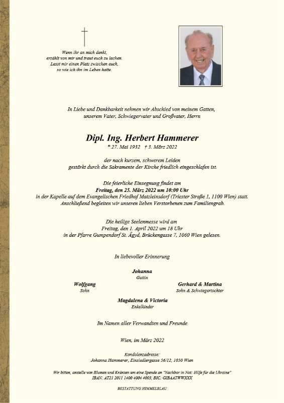geboren am 27. Mai 1932 in Raab gestorben am 3. März 2022 in Wien