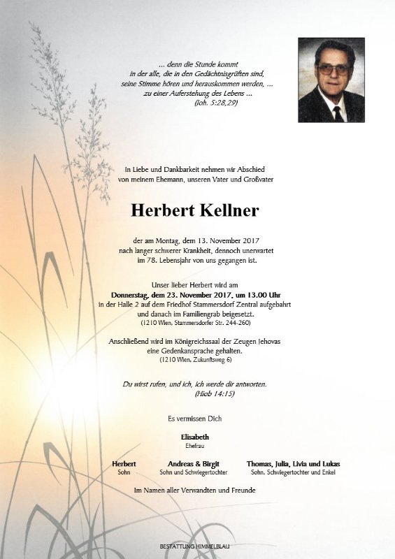geboren am 25. Januar 1940 gestorben am 13. November 2017