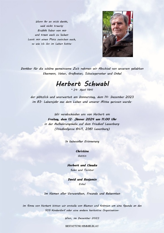 geboren am 24. April 1941 gestorben am 14. Dezember 2023 in Wien