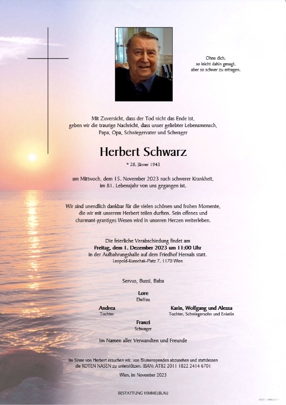 geboren am 28. Januar 1943 gestorben am 15. November 2023 in Wien