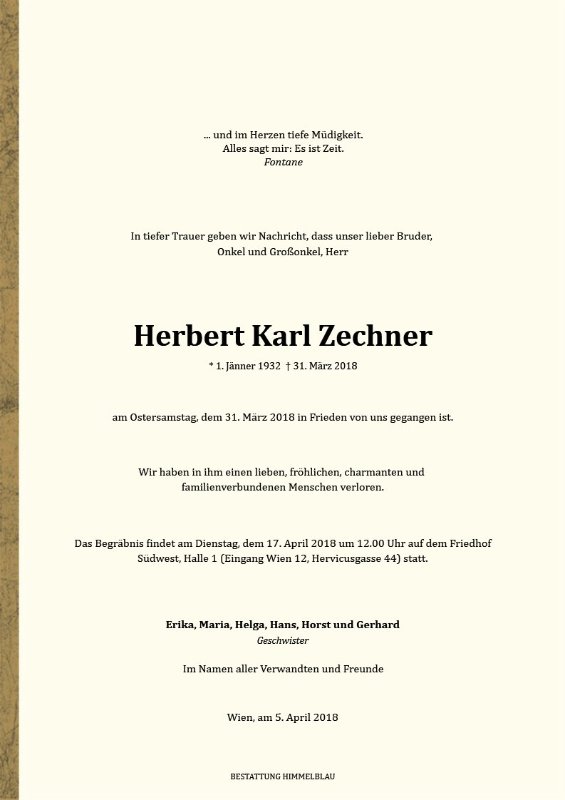 geboren am 1. Januar 1932 gestorben am 31. März 2018
