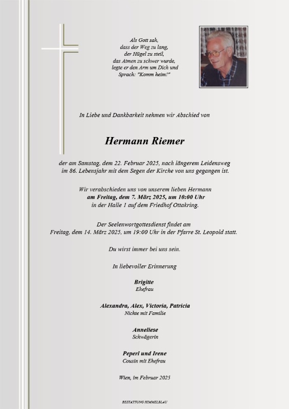 Mein herzlichstes Beileid. Er war mein Lehrmeister, und ich habe ihm so Einiges zu verdanken! Ruhen Sie in Frieden, Herr Riemer...