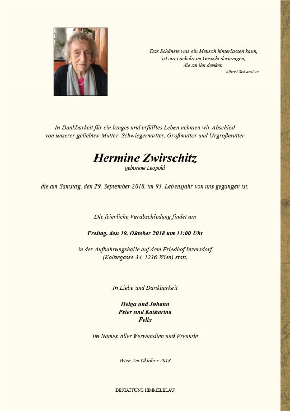 geboren am 1. Februar 1926 gestorben am 29. September 2018 in Wien