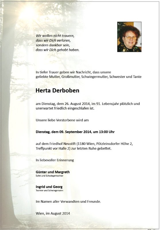 geboren am 16. April 1924 gestorben am 26. August 2014 in Lilienfeld