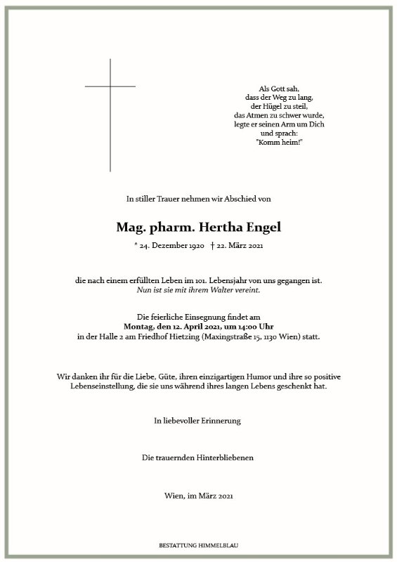geboren am 24. Dezember 1920 in St. Valentin gestorben am 22. März 2021 in Wien