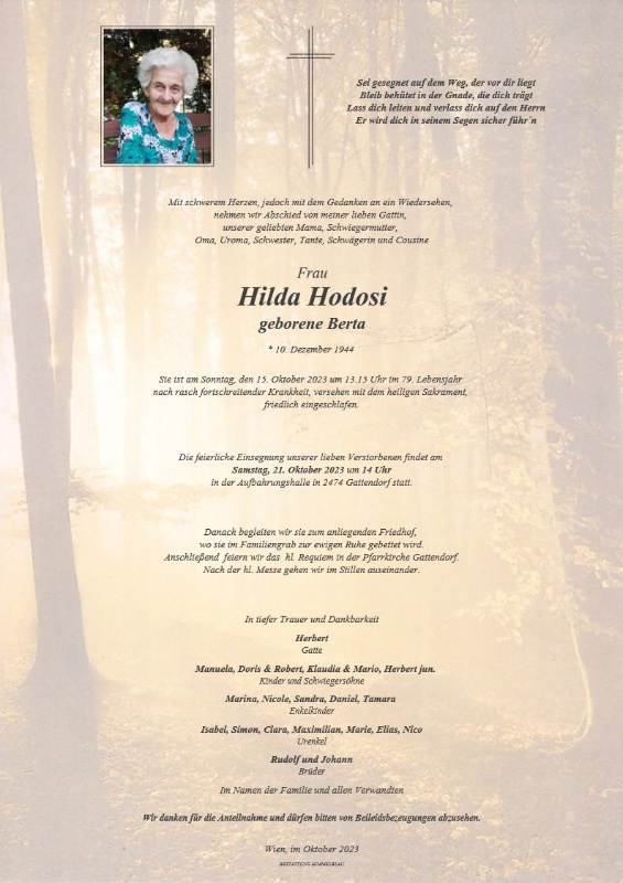 Oma, heute begleiten wir dich auf deinem letzten Weg. Danke, das du für uns immer so eine gute Oma warst und mit uns immer alles gemacht hast. Auch für unsere Kinder warst du die beste Urlioma.