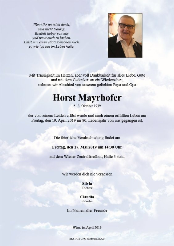 geboren am 13. Oktober 1939 gestorben am 19. April 2019 in Wien