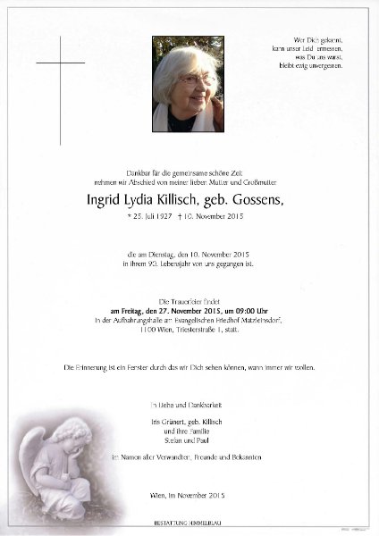 geboren am 25. Juli 1927 gestorben am 10. November 2015