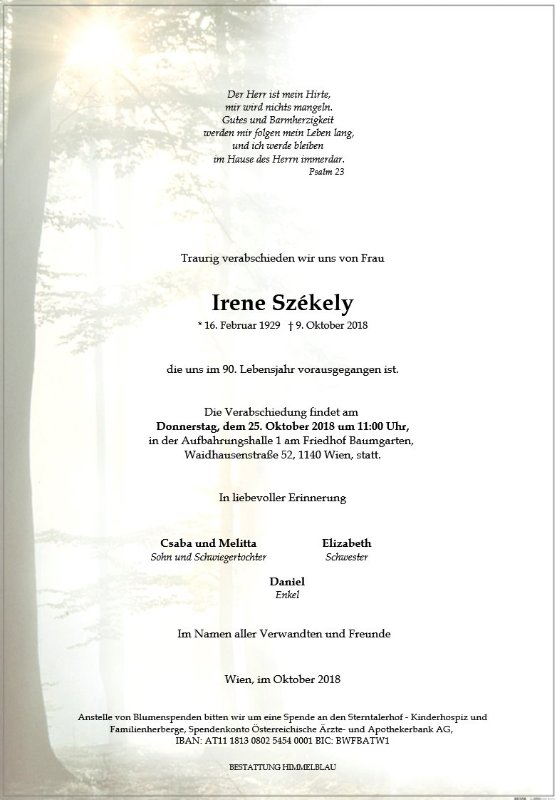 geboren am 16. Februar 1929 gestorben am 9. Oktober 2018 in Stockerau