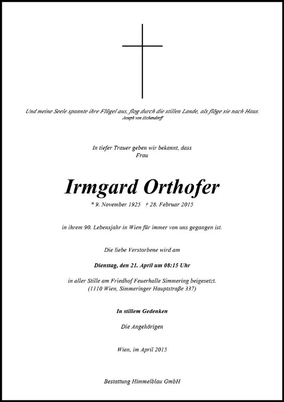 geboren am 9. November 1925 gestorben am 28. Februar 2015 in Wien