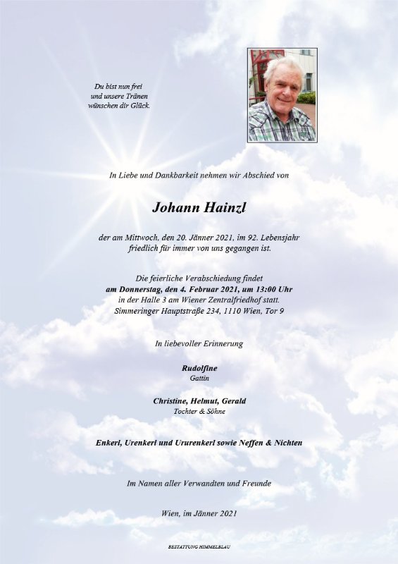 Dein Lebensweg ist zu Ende. Die Lebenstür hat sich geschlossen. Ich danke dir, dass deine Tür immer für mich offen war und ich dich ein Stück des Weges begleiten durfte. Sissy Hainzl