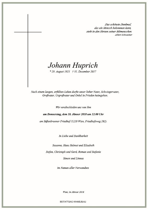 geboren am 29. August 1921 in Deutsch-Zepling (Rumänien) gestorben am 31. Dezember 2017 in Wien