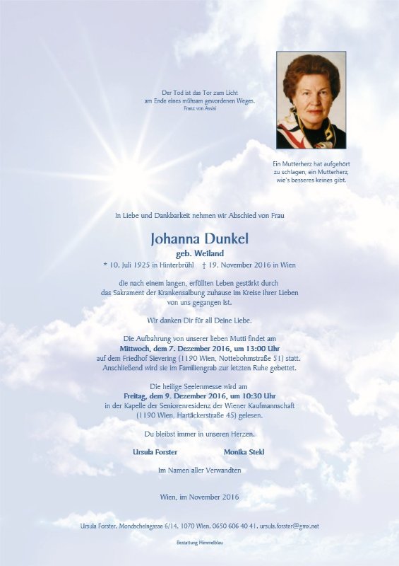 geboren am 10. Juli 1925 gestorben am 19. November 2016 in Wien