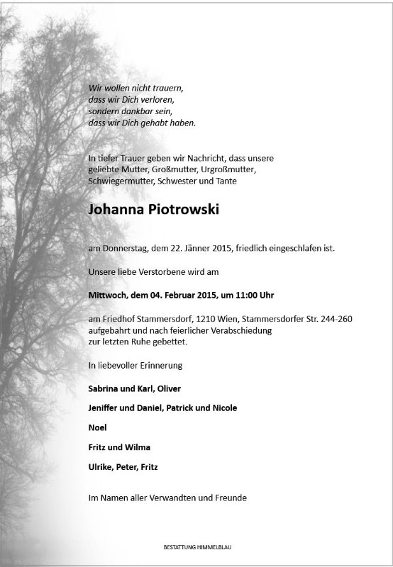 geboren am 12. April 1938 gestorben am 22. Januar 2015