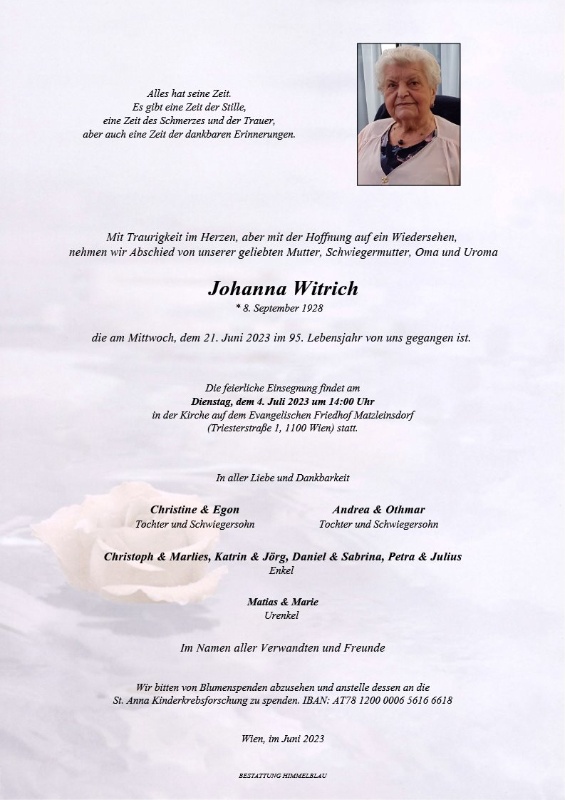 geboren am 8. September 1928 gestorben am 21. Juni 2023 in Wien