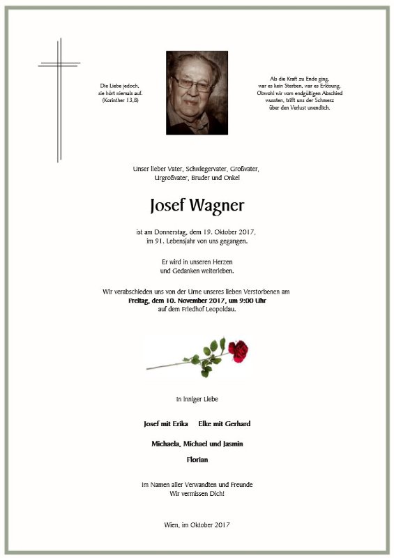 Lieber Sepp Onkel! Obwohl wir uns schon lange nicht gesehen haben, du bleibst immer in meinem Herzen. Ich habe Elke immer bewundert, , was sie und Jackie für einen tollen Vater hat. Ich war in den Ferien manchmal bei euch, es war immer lustig und sehr schön. Ich vermisse dich! In Liebe Anny