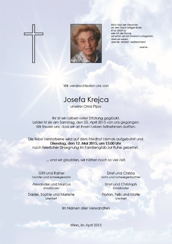 Oma Pipsy ist nicht mehrwir denken noch immer zuruck an die zeit die wir zusammen verbracht haben in FeistritzPipsy (und opa Fritz) bleiben immer in unsere gedanken