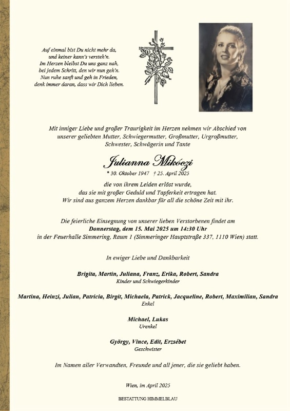 geboren am 30. Oktober 1947 gestorben am 25. April 2025 in Wien