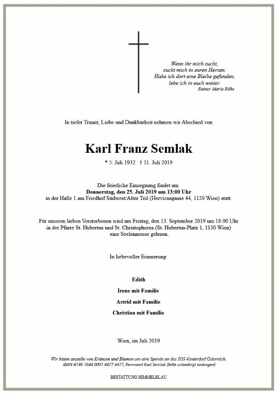 geboren am 5. Juli 1932 gestorben am 11. Juli 2019 in Wien