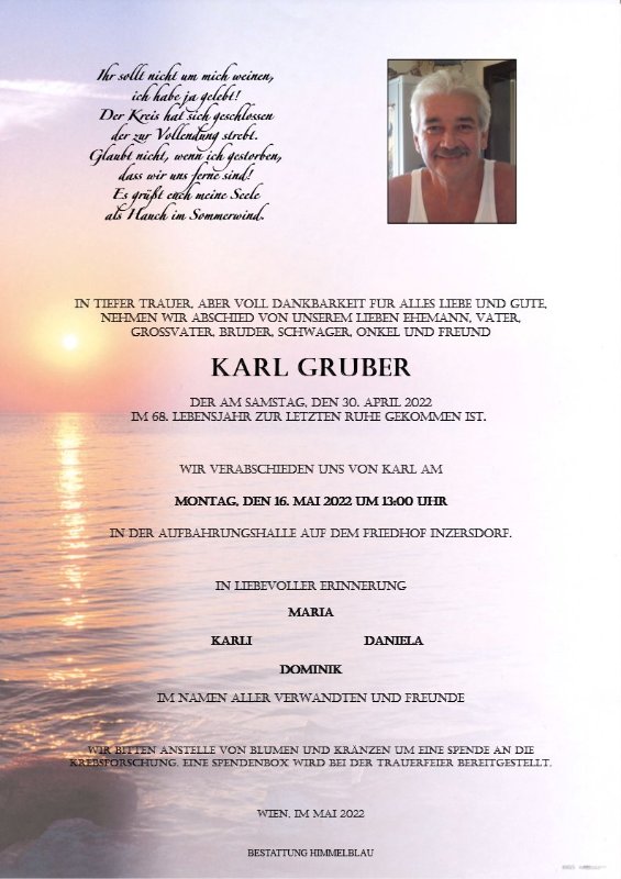 geboren am 3. Mai 1954 gestorben am 30. April 2022 in Schleinbach