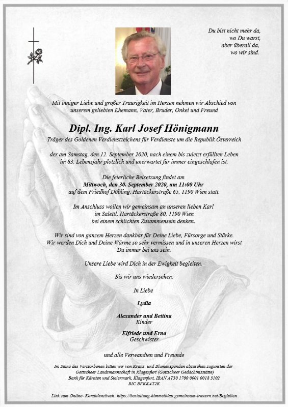 Karl war mein liebster Tarockpartner! Er war ein Mensch, den man ganz einfach gern haben musste.Ein großer Verlust!Mein tiefstes Mitgefühl seiner Familie.Franz