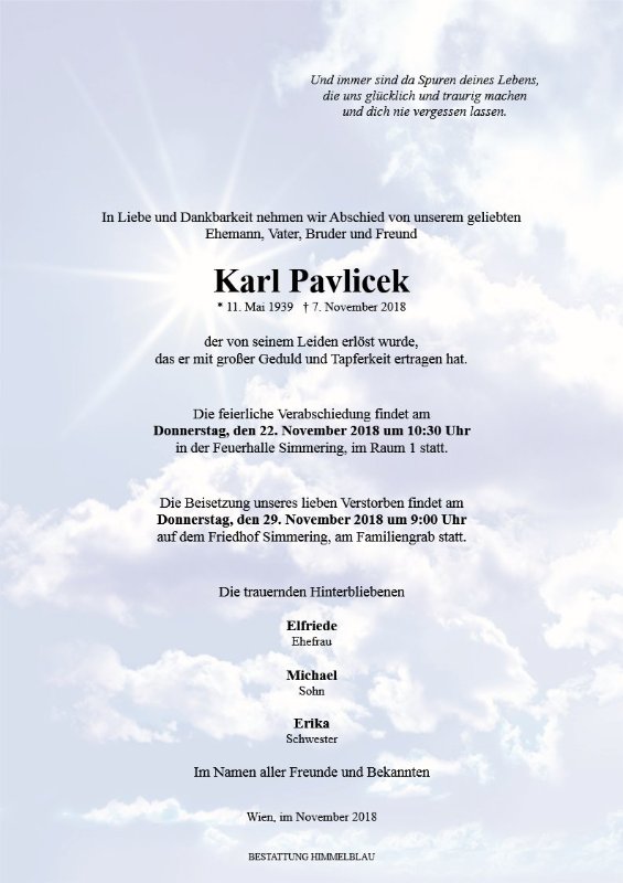 mögen Deine Hunde Dich begleiten, die Wiener Lieder Dich auf ewig erfreuen und auch die anderen von Dir geschätzten Genüsse verfügbar sein, wo auch immer Du jetzt bist....