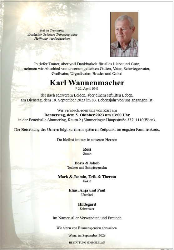 geboren am 22. April 1941 gestorben am 19. September 2023 in Wien