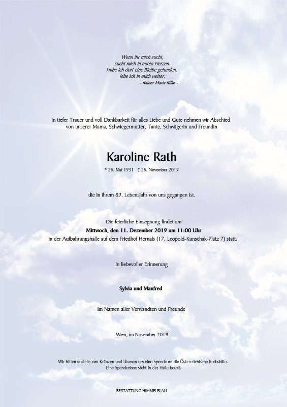 geboren am 26. Mai 1931 gestorben am 26. November 2019 in Wien