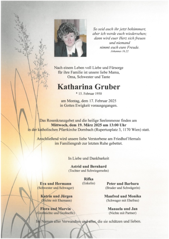 geboren am 15. Februar 1950 gestorben am 17. Februar 2025 in Wien