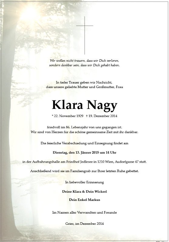 geboren am 22. November 1929 in Miletic gestorben am 19. Dezember 2014 in Wien