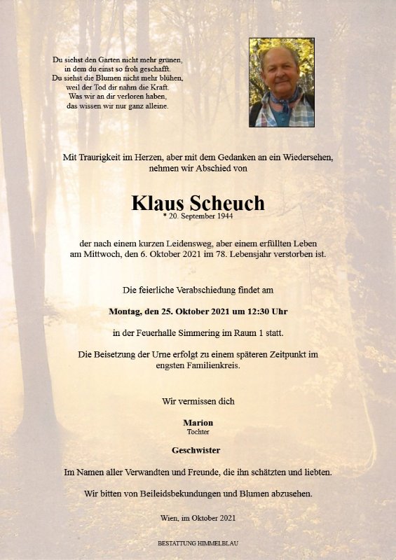 geboren am 20. September 1944 gestorben am 6. Oktober 2021 in Wien