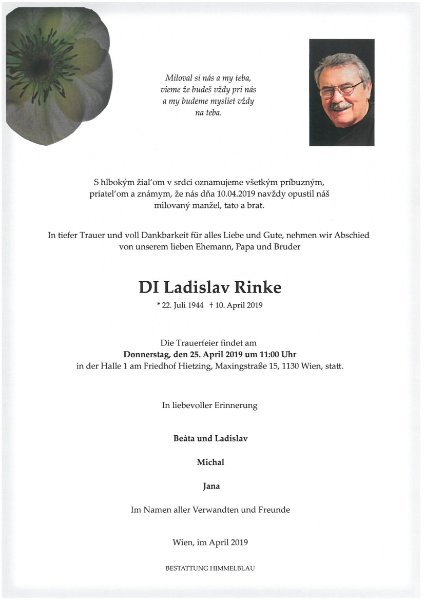 geboren am 22. Juli 1944 in Roznove gestorben am 10. April 2019 in Wien