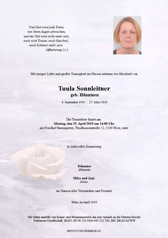 geboren am 8. September 1945 in Liperi gestorben am 27. März 2019 in Wien