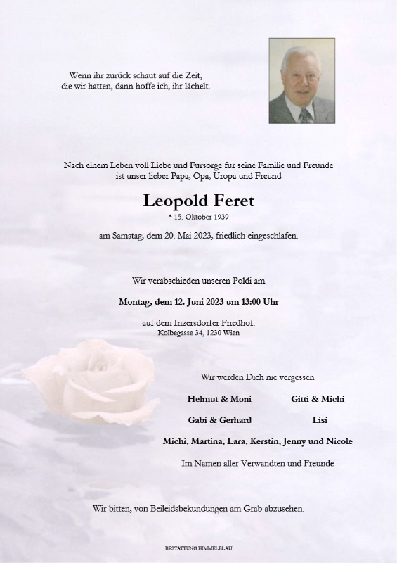 geboren am 15. Oktober 1939 gestorben am 20. Mai 2023 in Wien