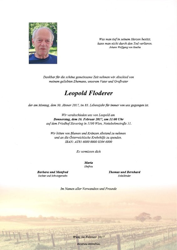 Ich erinnere mich gern an manche nette Stunde in Sievering. Möge Ihr Mann, Dein Papa in Frieden ruhen, ich denke gern an ihn zurück.