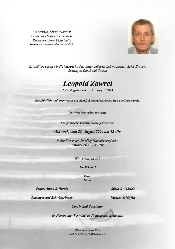 geboren am 27. August 1959 gestorben am 15. August 2024 in Wien